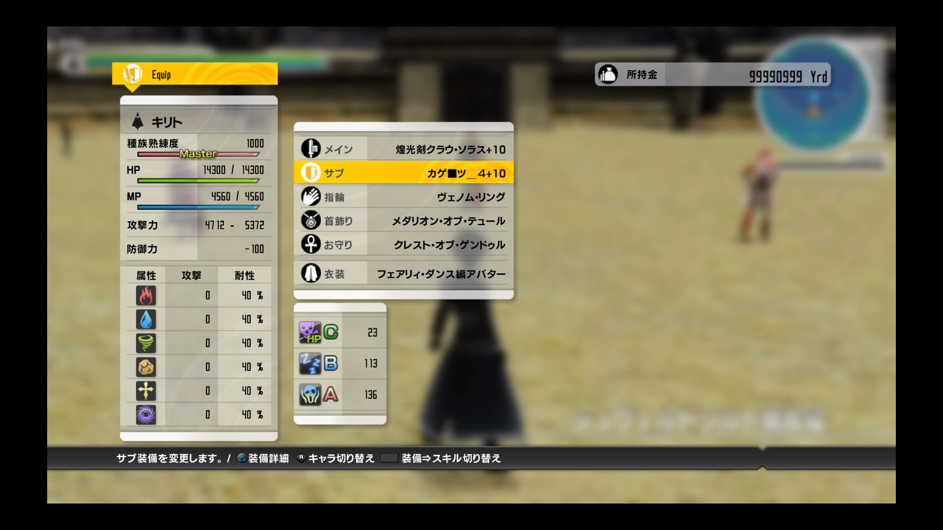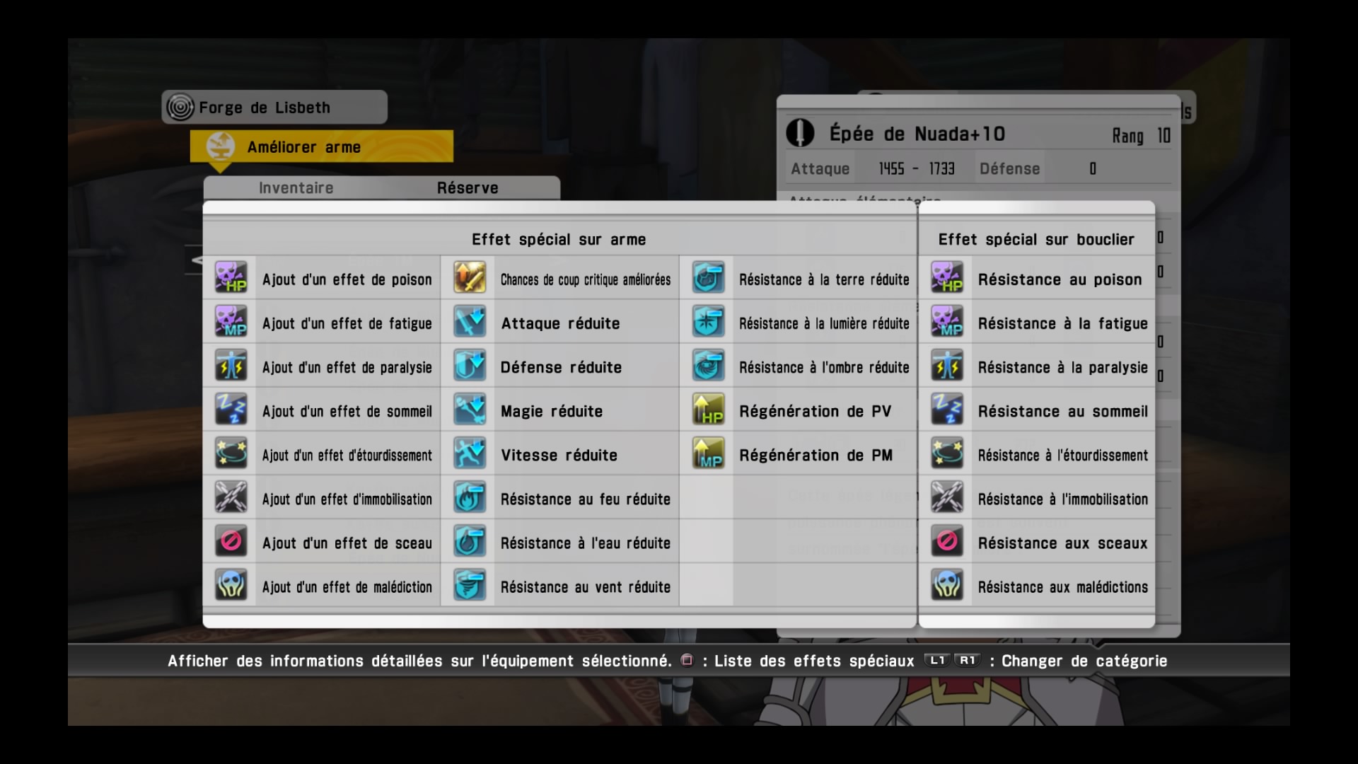 Dans le cas générale de combat, les joueurs joue Kirito avec un gondul, les immunisants du sommeil. Les alterations efficace alors sont :