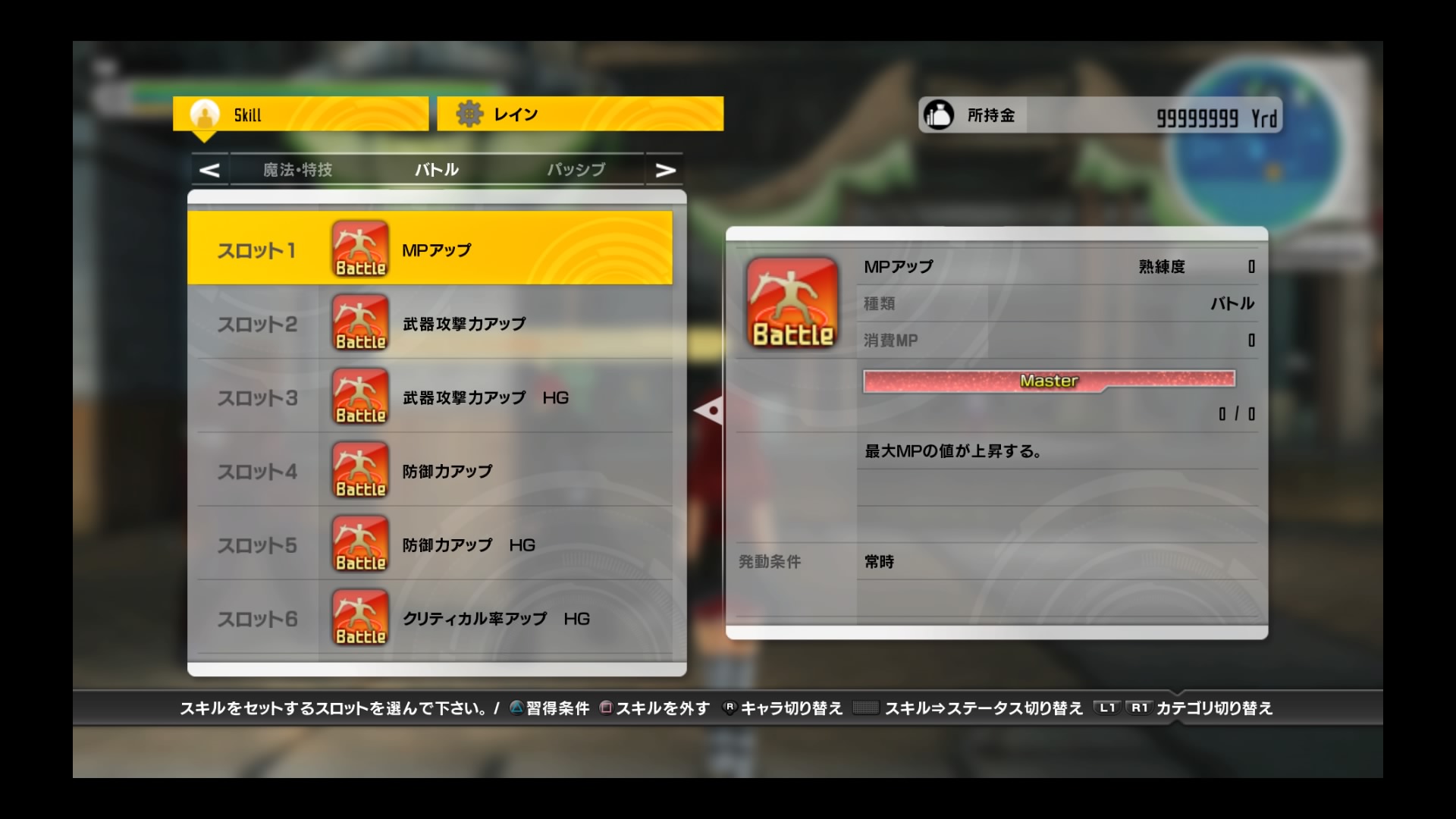 Yuuki : Renfort de PM, Renfort d'attaque, Renfort d'anti-altérations, Renfort d'altérations, Renfort d'ombre +